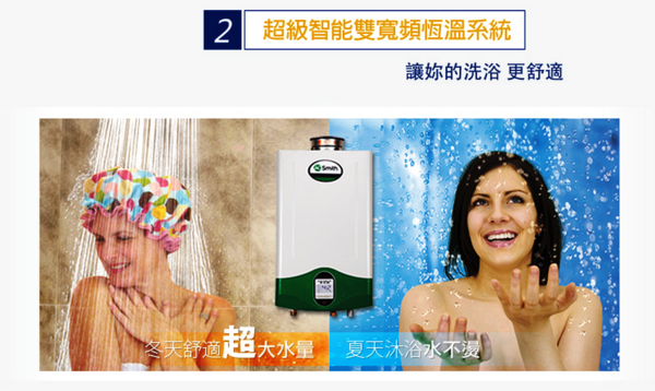 ★ 超級智慧雙寬頻恆溫系統:夏天沐浴水不燙、