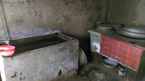 用的熱水是大灶燒木材而來的熱水