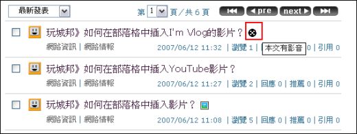 若是選擇第二種方式,在文字框中貼上影音code的話,在您文章列表後面,會出現