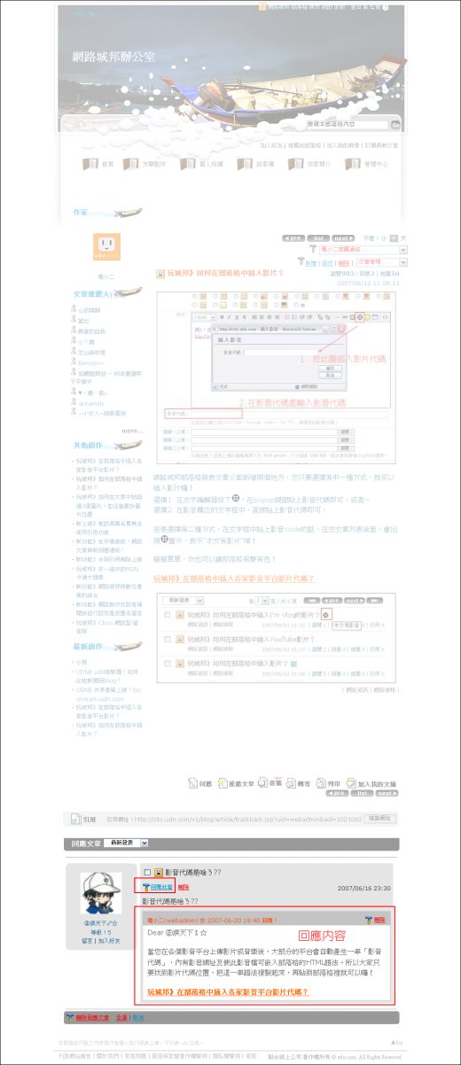 在您部落格的回應文章中,悄悄地加上了一個「回覆此篇」的連結。