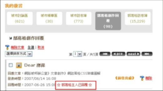 已在我的發言加上一段紅字,如下圖,大家可以到我的發言,看看自己留下的文章回應,是否有被部落格主人回覆。
