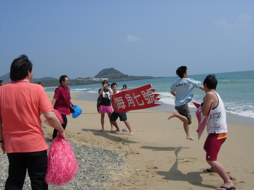 記者會後好戲上場,魏導率全體演員在海灘邊為小范加油助陣,為了突顯票房佳績,工作人員特別製作了一面「海角七號票房破億」橫幅,讓小范衝破下水,象徵票房破億,並在海面上設置一個奧斯卡小金人,象徵小范送給導演拿下奧斯卡的祝福。