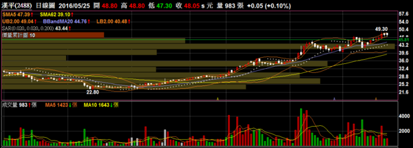 漢平 2488 音響設備:支撐線上移來到5/23低點,持續高檔震盪。
