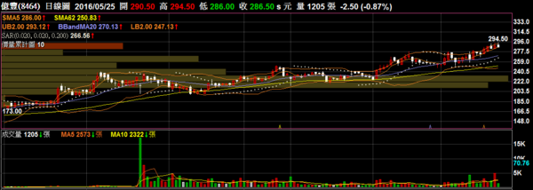 億豐 8464 傳統產業:帶量紅K向上突破,短多持續。