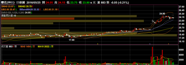 櫻花 9911 建材:短線量能表現的相當不錯,高檔震盪後有機會再持續噴出。