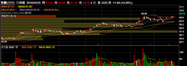 敬鵬 2355 印刷電路:接近前波高點,量能盡量滾到五千左右比較有機會站穩突破。