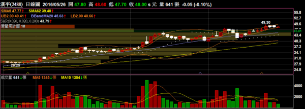 漢平 2488 音響設備:支撐線上移來到5/23低點,持續高檔震盪。