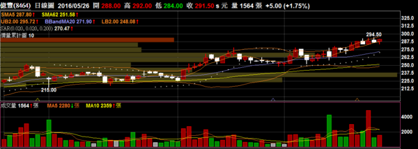 億豐 8464 傳統產業:帶量紅K向上突破,短多持續。