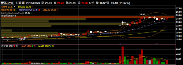 櫻花 9911 建材:短線量能表現的相當不錯,高檔震盪後有機會再持續噴出。