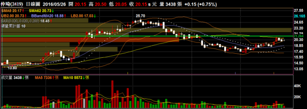 〔測試〕仲琦 2419 接取設備:目前量能與兩個月頭部相比少很多,並且遇到盤整區與季線反壓,若無滾量向上突破機率低。