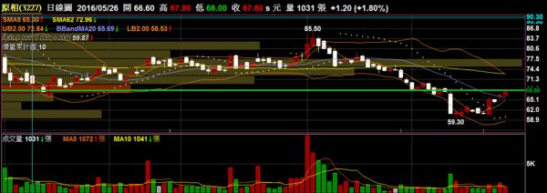 〔測試〕原相 3227 IC設計:近期小反彈無量,目前在5/12出量黑K棒上方與小盤整區,有機會再此見到壓力。