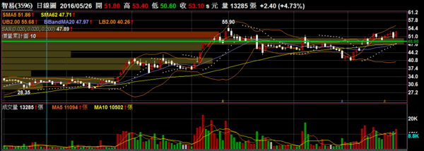 智易 3596 無線網路:目前接近前波高點量能與籌碼都表現得相當不錯,向上突破機率較高。
