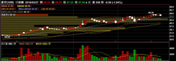 漢平 2488 音響設備:支撐線上移來到5/23低點,持續高檔震盪。
