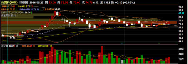 長園科 8038 化工指標:小滾量向上有機會出現向上突破,但要注意目前量能還是不足要有1500左右較佳。