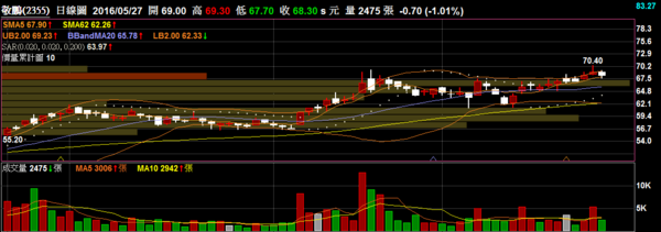 敬鵬 2355 印刷電路:開盤出量創高,量能也預期達到了五千左右,有機會站穩突破短多持續。