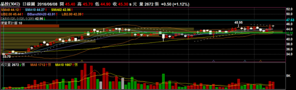 晶技 3042 石英元件:籌碼與量能保持的相當不錯,下方有大量區的支撐與季線,短多有機會繼續向上突破。