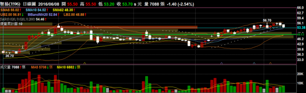 智易 3596 無線網路:目前接近五年來的高點,依目前的量能與籌碼表現有機會走出大波段的突破。