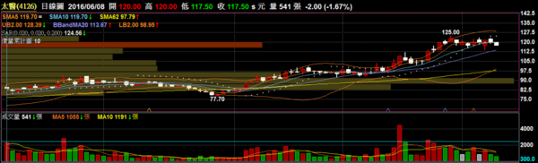 太醫 4126 醫療產品:高檔震盪整理短線量能表現的不錯,以目前的籌碼與量能有機會可以挑戰歷史新高價。