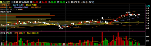聯合 4129 醫療產品:高檔震盪整理籌碼面相當不錯法人買散戶賣,目前接近歷史新高,量滾量有機會走出大波段。