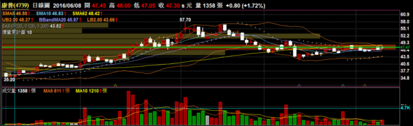 〔測試〕康普 4739 化工:近期量能萎縮目前來到大量區下方與季線反壓,為空方控盤格局。