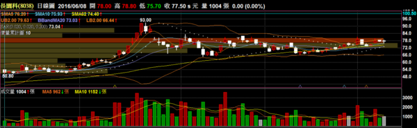 長園科 8038 化工指標:短線出量強勢向上,量滾量短多有機會持續。