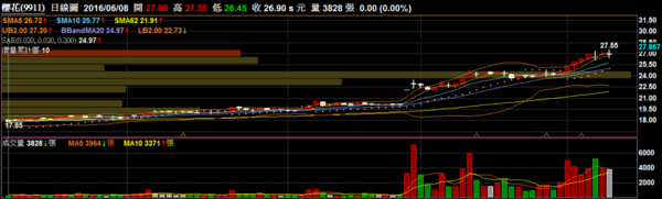 櫻花 9911 建材:短線出量強勢向上,量滾量短多有機會持續。