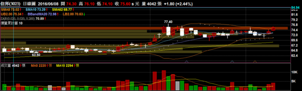 信邦 3023 連接線材:這一波上攻的量能與籌碼相當不錯是法人買融資賣,目前這一個盤整區整理了一個月左右,有機會持續突破。