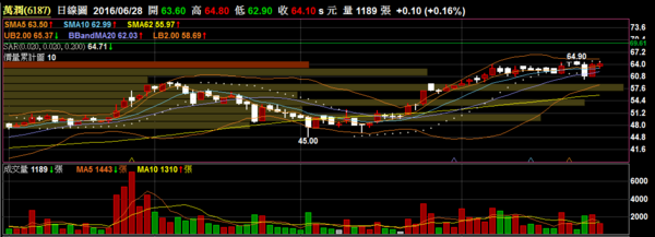 萬潤 6187 設備儀器:盤勢一穩就收斂了昨日的跌幅,量能與籌碼維持的相當不錯,目前的位子來到歷史新高附近若滾量有機會突破。