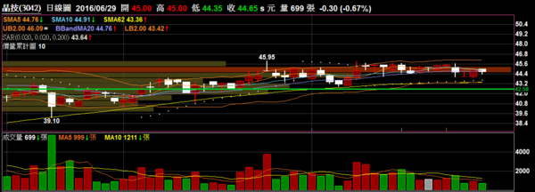 〔測試〕嘉晶 3016 半導體:目前在季線附近盤整一個月左右始終未向上突破,以經驗法則來說是不利多方,空方格局持續。