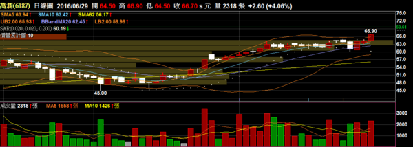 萬潤 6187 設備儀器:突破將近一個月的整理區間,目前接近歷史高點附近,若有心量能應滾到3000左右較有機會站穩突破。