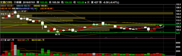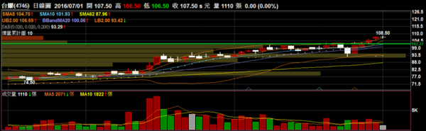 台耀 4746 化工:重新突破盤整區間,百元關卡的壓力目前轉為支撐。