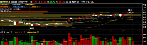 萬潤 6187 設備儀器:突破將近一個月的整理區間,目前接近歷史高點附近,若有心量能應滾到3000左右較有機會站穩突破。
