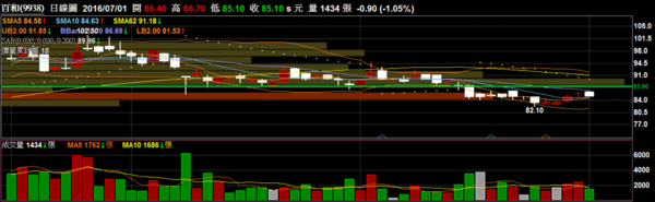 〔測試〕〔融券回補日7/29〕百和 9938 中概股:量能持續萎縮並且上方的支撐轉為壓力與季線反壓,若無滾量向上突破機率較低。