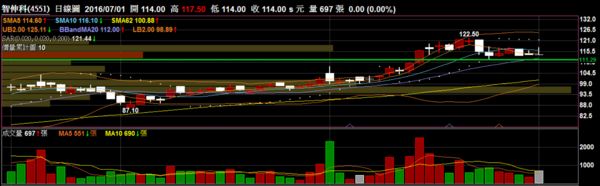 智伸科 4551 機械零組件:高檔震盪整理近期量能與籌碼表現相當不錯,短線上有機會繼續上下歷史新高。
