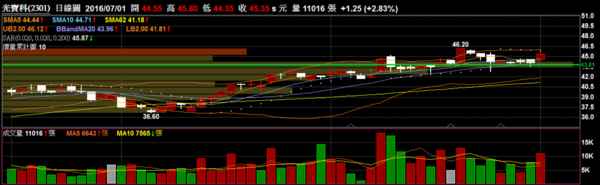 光寶科 2301 電源相關:強勢突破反轉K棒,短多相當強勢。