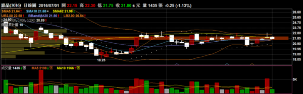 〔測試〕嘉晶 3016 半導體:目前在季線附近盤整一個月左右始終未向上突破,以經驗法則來說是不利多方,空方格局持續。