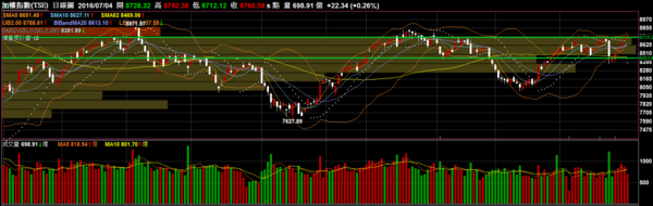加權指數 TSE:今日大盤偏弱十點過後就一路向下小整理,目前只有加權指數創下波段高,OTC則尚未突破波段高主要都在做整理為主,短線大盤有機會轉弱但不建議在見到反轉趨勢前轉空操作,當沖角度短空長多。