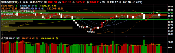 加權指數 TSE:目前國際盤情勢來看,7/6號的重挫看來不至於轉為起跌點,禮拜五美股又公布強勁非農就業指數,道瓊再次逼近歷史新高點,台股最大的問題還是在成交量上面,萎靡的量能要突破套牢區難度還是較高的,當沖角度短多長多。
