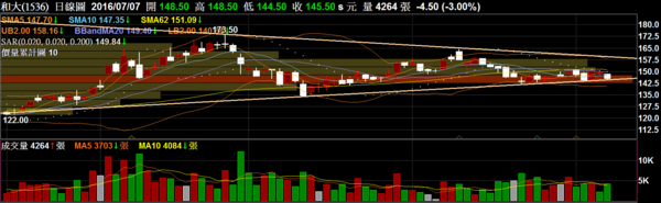 〔測試〕和大 1536 汽車零組件:目前的籌碼面相當差法人大賣融資大賣,並遇到季線反壓有機會跌破趨勢線。