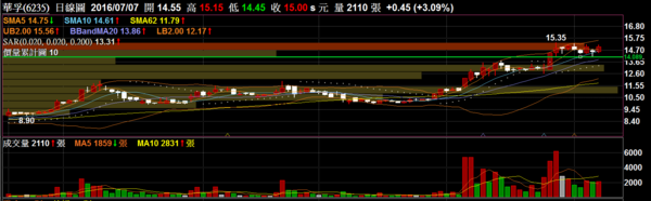 華孚 6235 機殼指標:近期小出量以此檔個股來說相對較多,近期在此盤整了一個禮拜,有機會再次向上突破。