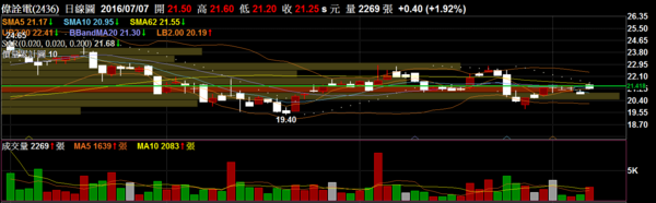 〔測試〕〔融券回補日7/7〕偉詮電 2436 IC設計:量能持續萎縮並且上方的支撐轉為壓力與季線反壓,若無滾量向上突破機率較低。