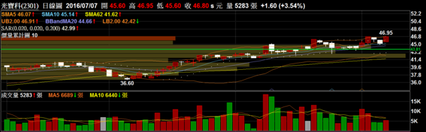 光寶科 2301 電源相關:強勢突破反轉K棒,短多相當強勢。