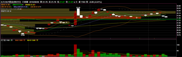 元大S&P黃金 00635U:目前回測前四個月的壓力區,並且KD即將出現低檔黃金交叉。