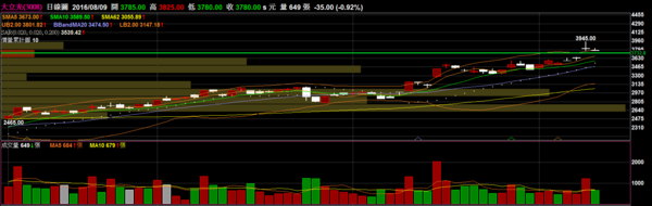 大立光 3008 手機零組件:開盤就強勢跳空創下歷史新高,算是一個相當強勢的表態,上方套牢區量能並不多。