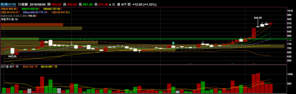 台光電 2383 印刷電路板:目前在歷史高點前盤整了一個月左右,今日帶量強勢突破,有機會出現大波段。