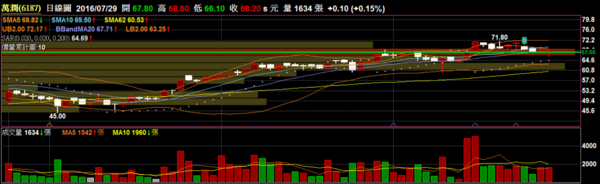找買點 接近歷史新高並走勢較佳:精測 6510 IC 封測 、雙鴻 3324 散熱模組、台光電 2383 印刷電路板、大立光 3008 手機零組件、慶騰4534 機器零組件。 萬潤 6187 ...