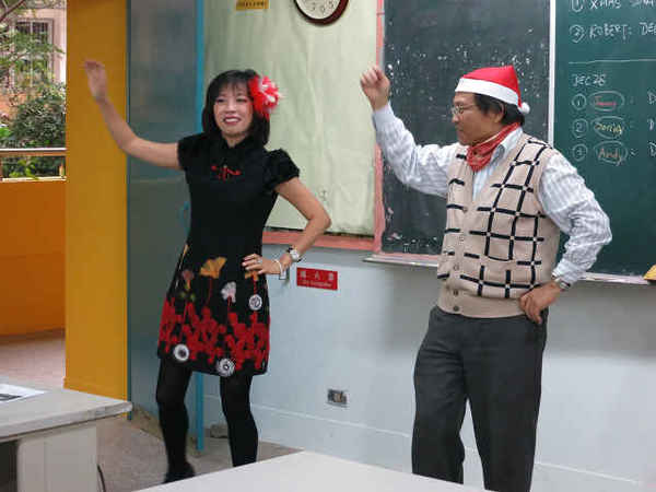 Dancing from Jenny Chou, Tammy, Henry, and Bob along the song “Sugar” Jenny Chou and Tammy dressed up to make this dance much more attracting. At first, it was performed by them. Then Jenny Zheng and Olga joined the last session. Finally, all the members danced together.