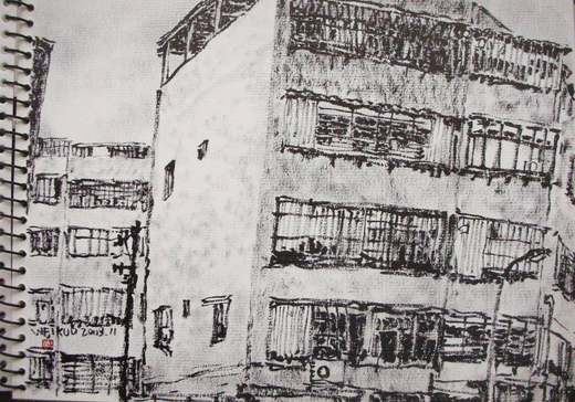 游走在擁擠狹小的巷弄內觀察各類老舊或新穎建築
