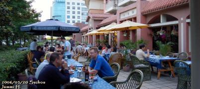 那天用新買的DSLR NIKON D50跟OC開車到蘇州新區拍那些工業區的大門造型,為準備新蓋的廠房門口做個參考。晃了一下午後來到這?喝咖啡吃晚餐,然後天就黑了,開車回常熟。