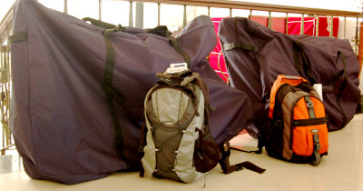 ME & OC 的行李,腳踏車已經裝進裝車袋,跟一人一個背包。